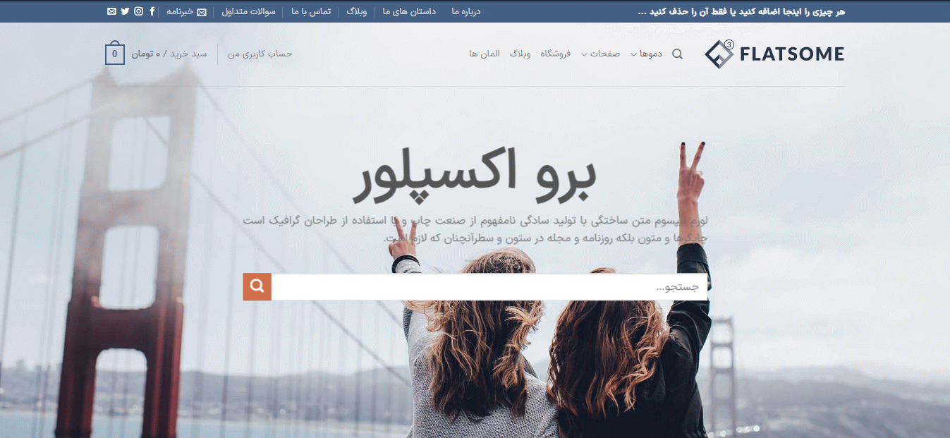 پوسته Flatsome یک قالب چند منظوره وردپرس و ووکامرس برای فروشگاه، وب سایت شرکت یا وب سایت تمام مشتریان شما به عنوان یک آژانس یا فریلنسری است. تمام ابزارهای مورد نیاز برای ایجاد وب سایت های واکنشگرا بسیار سریع با تجربه کاربری شگفت انگیز را دارد. تنظیمات فراوان با یک صفحه ساز واکنش گرا انقلابی، به شما این امکان را میدهد که هر چیزی را بدون هیچ کدنویسی ایجاد کنید. Flatsome چیزی بیش از یک پوسته است، این قالب یک ابزار قدرتمند است که به شما آزادی ایجاد هر وب سایتی را که میتوانید تصور کنید، میدهد. چه به یک وبلاگ، یک نمونه کار، یک سایت تجاری یا یک فروشگاه تجارت الکترونیک.